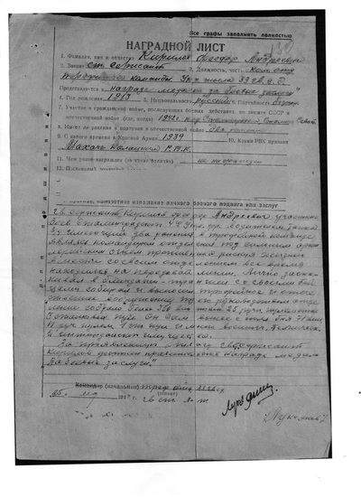 Мой прадедушка, Кирилов Фёдор Андреевич, был участником боев Сталинградского 4-го Украинского фронта водителем танка, имел много боевых ранений . н всегда находился на передовой линии фронта. У моего деда есть много медалей, и самыми дорогими для себя он считал орден Красной Звезды, медаль «За боевые заслуги». Я горжусь своим дедом.